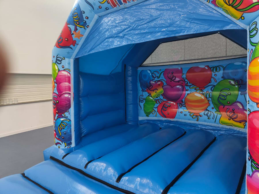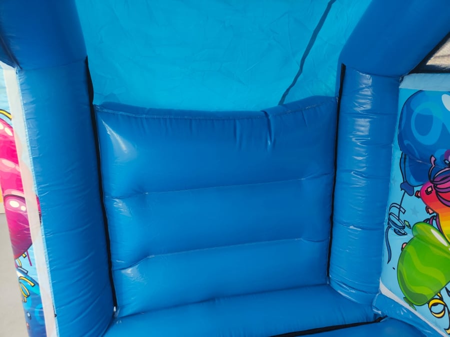 The castle is a beautiful blue base colour that is sure to catch the eyes of everyone! The front arch displays a burst of colour with ‘PARTY TIME’ in bold writing standing out against the backdrop. The whole castle is covered in exciting and fun graphically designed balloons that will add that pop of joy to your day! This castle is perfect for all and any special days, and is sure to bring smiles to all your guests faces.