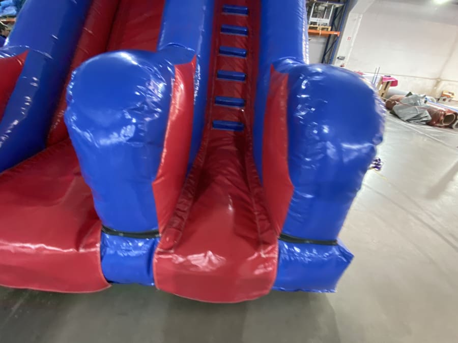 Picture this: a vibrant red and blue inflatable slide, standing tall at 8 feet, beckoning guests with its vibrant colours and irresistible allure. It's not just a slide—it's a gateway to endless thrills and unforgettable moments.