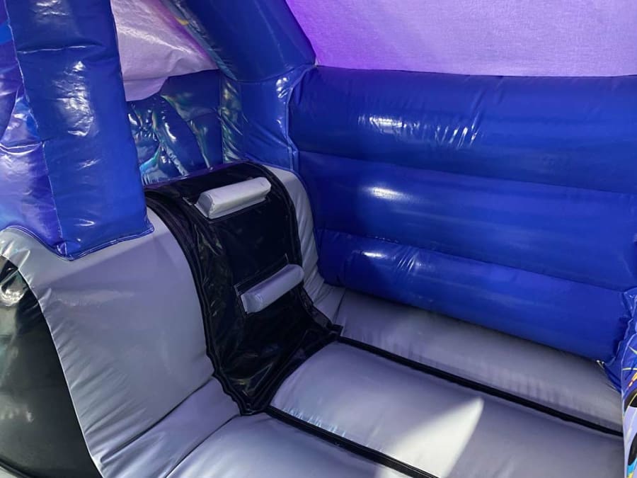 The 15ft x 12ft 3D Slide Combo Superhero stands tall as a striking combination of shades dominated by cool and heroic greys, blues, and blacks. With a commanding 3D superhero overseeing the slide, this inflatable masterpiece is designed to captivate attention and elevate your event to legendary status. Its superheroic patterns and design elements add a touch of style and excitement that will undoubtedly make your gathering stand out, be it a birthday bash, a family reunion, a school fair, or a community festival—our superhero-themed bouncy castle will steal the spotlight.