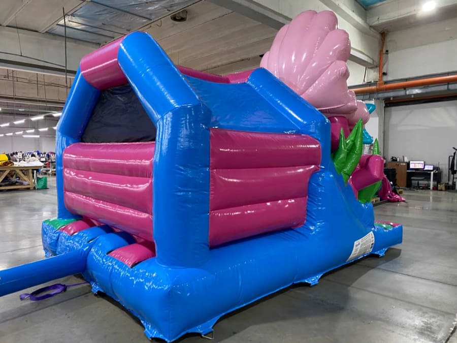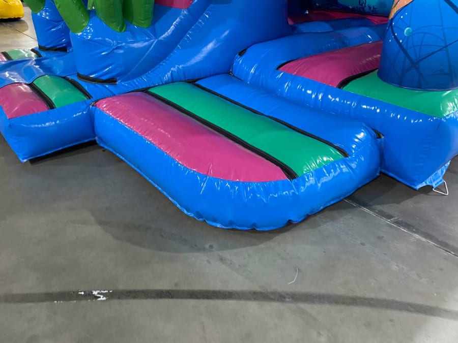 The Mermaid Front Slide Combo is a breath-taking burst of vibrant hues and oceanic charm. Predominantly adorned in mesmerizing shades of aquatic blue complemented by tasteful hints of enchanting pink, this inflatable marvel is designed to captivate the imagination and create an unforgettable ambiance. Its trendy and whimsical patterns add a touch of elegance that will undoubtedly make your event stand out, whether it's a birthday celebration, a family reunion, a school fete, or a community festival—our 15ft x 12ft Mermaid Front Slide Combo will steal the spotlight.