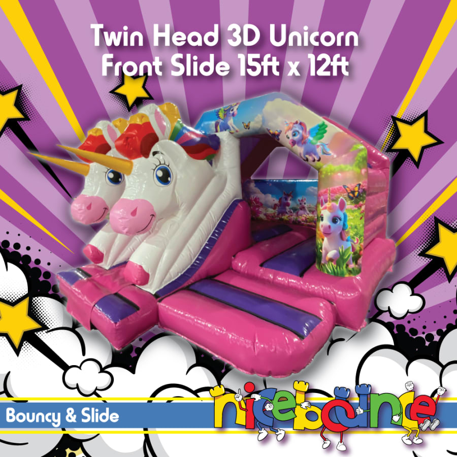 Make Magical Memories with the Twin Head Unicorn Bounce & Slide (3D) 15ft x 12ft
