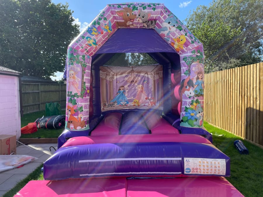 Bring heaps of joy to your guests as they enter a world adorned with enchanting princesses, lush greenery, and adorable animals. The castle's exterior is a masterpiece, setting the stage for an unforgettable experience. From the moment they lay eyes on the vibrant purple and pink hues, along with the charming scenes, your guests will be transported to a world of endless fun. Perfect for birthdays, celebrations and any event that deserves a touch of enchantment, let the allure of princesses surrounded by gorgeous colours add a touch of magic to your gathering.