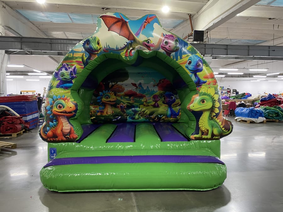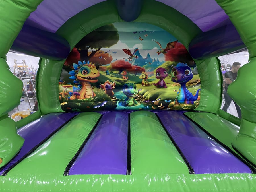 Experience boundless bouncing joy on the extraordinary green and purple bounce bed, surrounded by adorable 3D baby dinosaurs and delightful graphics. Our commitment to your enjoyment extends to both indoors and outdoors! If you have the required space indoors, we are happy to accommodate. Wherever you wish to create your memories, Nice Bounce stands ready to tailor to your desires and requirements. If you have any questions or queries, please contact our friendly team at info@nicebounce.co.uk. Not into emails? No worries! Give us a call on 07921124205 or even drop us a message on Facebook, where our team is readily available to chat about all things bouncy castle! Your only task? Get ready for all the bouncing fun coming your way.