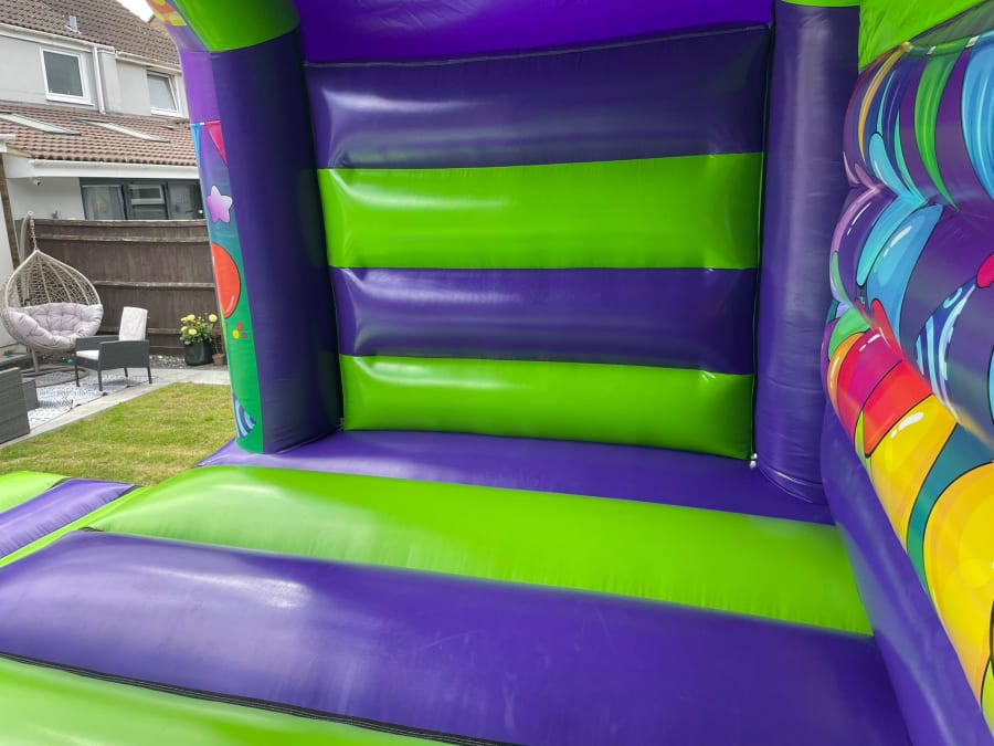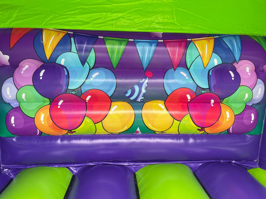 Your guests will be amazed as they step into a world of dynamic purple and green hues adorned with an array of graphic design balloons. The castle's exterior is a visual masterpiece, setting the stage for a one-of-a-kind experience. From the moment they see the bold colours and playful designs, your guests will be immersed in a realm of endless celebration. It will be the perfect castle to add something special to your event!