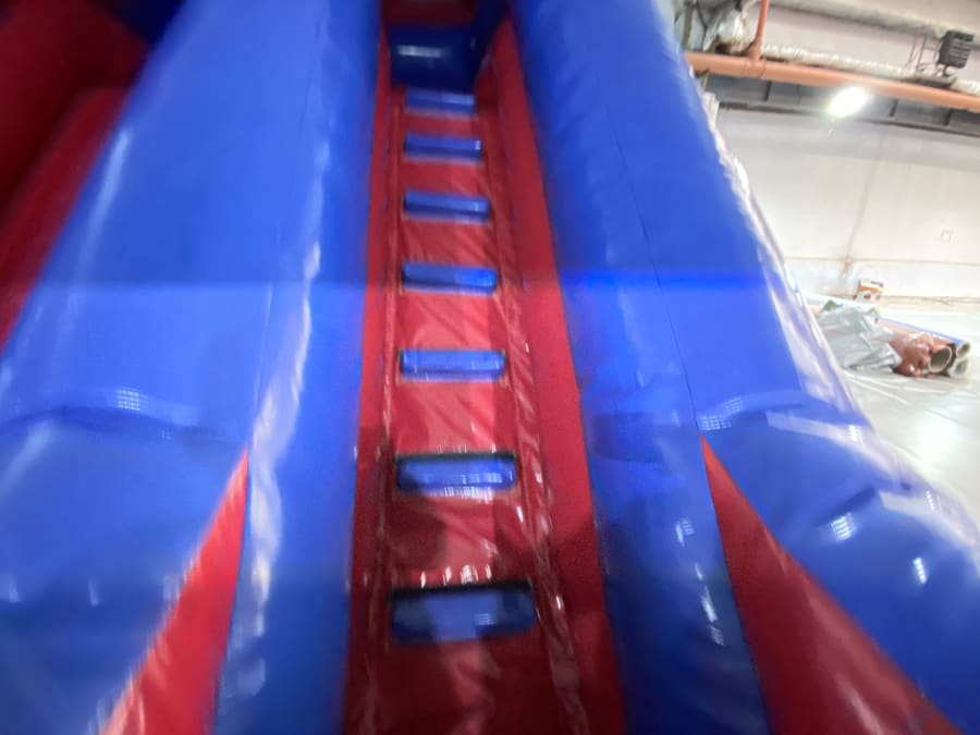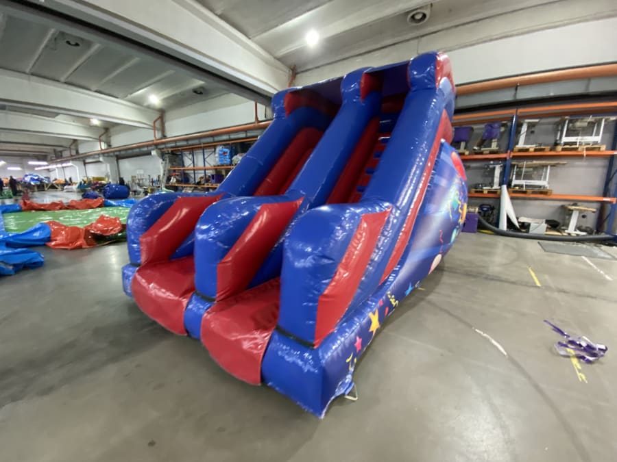 Picture this: a vibrant red and blue inflatable slide, standing tall at 8 feet, beckoning guests with its vibrant colours and irresistible allure. It's not just a slide—it's a gateway to endless thrills and unforgettable moments.