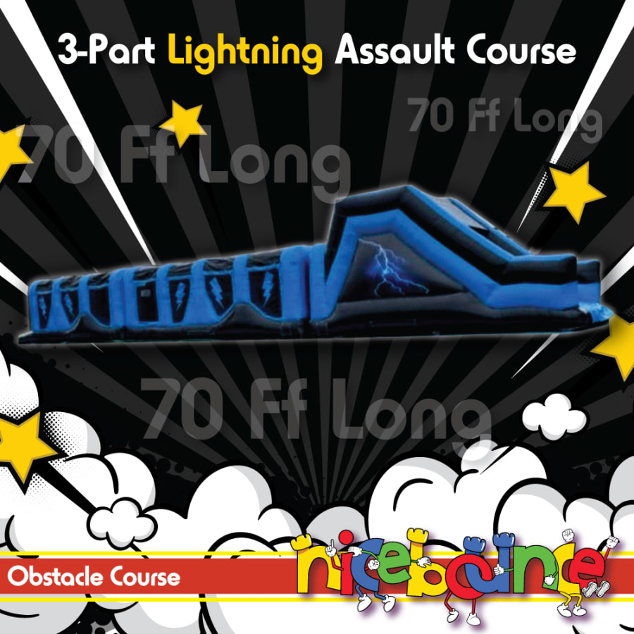 Dive into a high-energy experience with the Lightning Assault Course from Nice Bounce. Unleash your inner adventurer and let the competitive spirit soar as you face off against friends or set a personal record. Don’t miss out on this charged adventure that promises non-stop action and laughter.