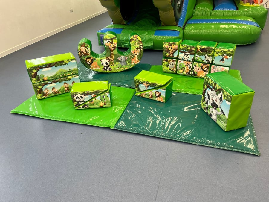 • Soft Play Shapes: Jungle-themed shapes with animal designs for stacking, climbing, and imaginative play.